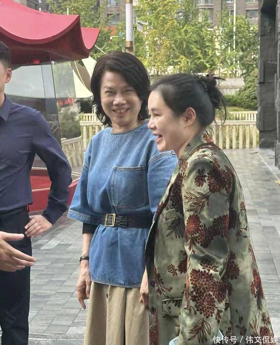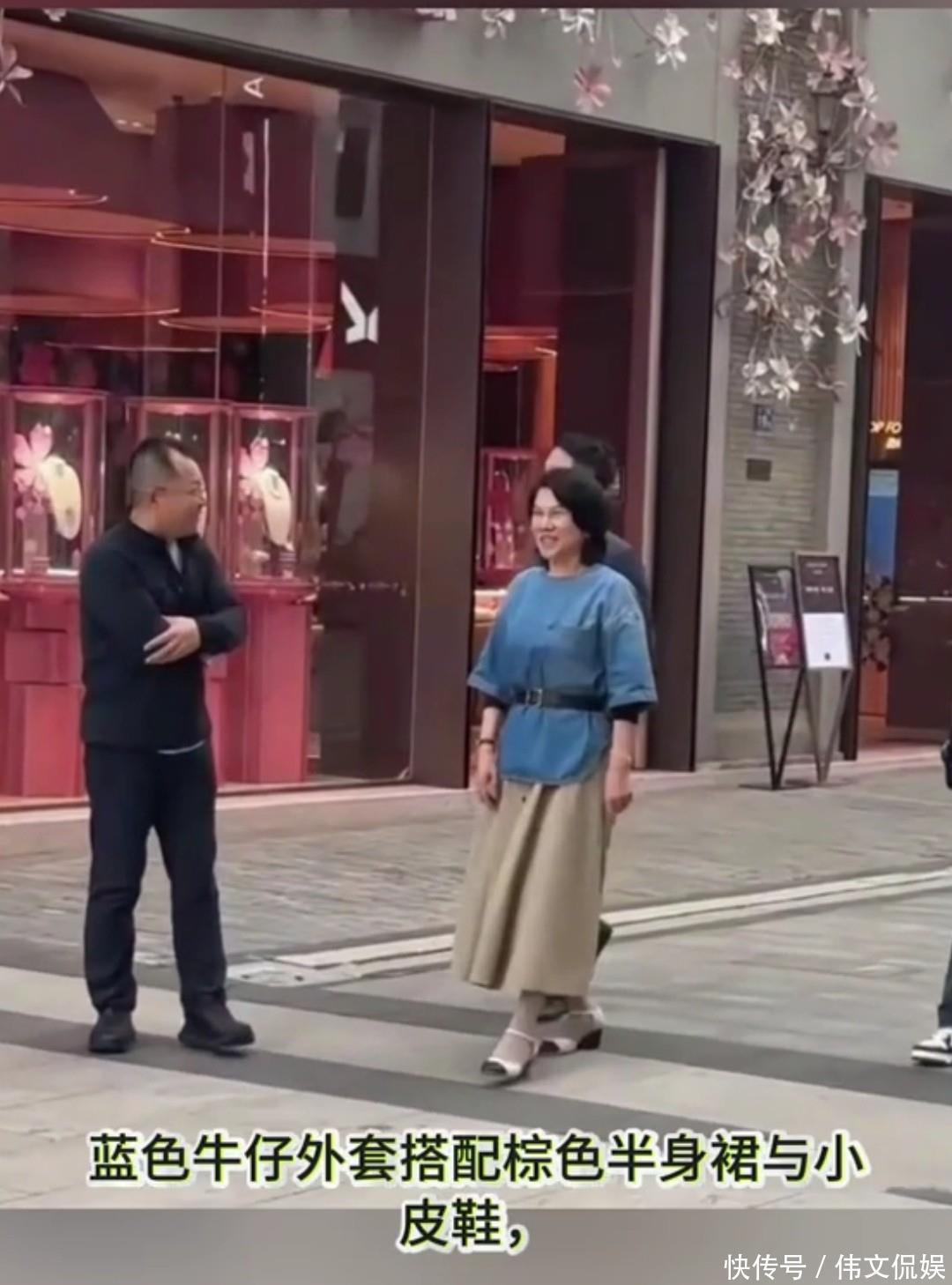 当天她身着蓝色牛仔外衣,腰间皮带勾勒利落线条,搭配棕色长裙,整体造型简约干练,丝毫看不出古稀之年的疲态,活力感扑面而来。